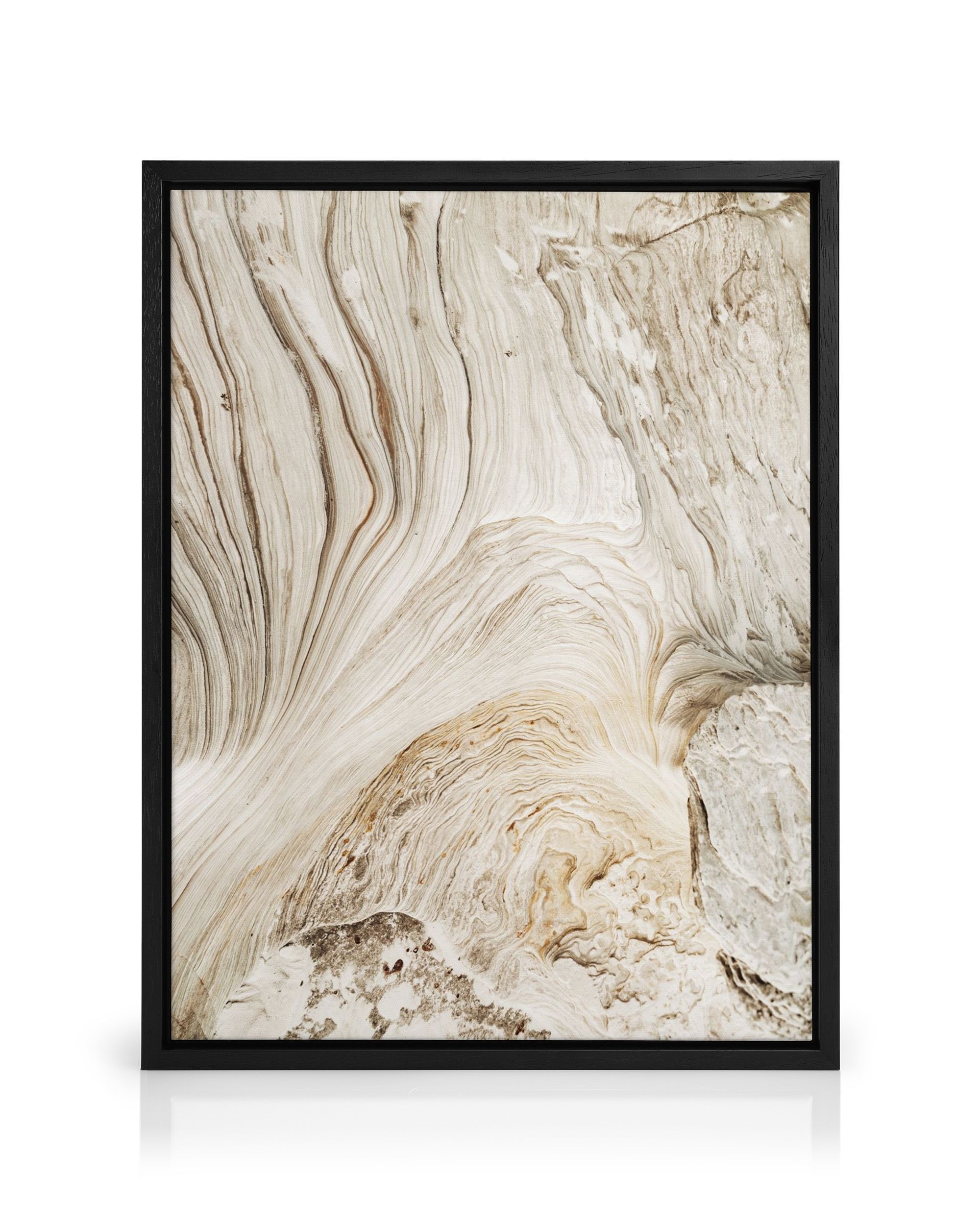 Abstract print with swirling patterns in beige and cream colours. The flowing lines create a natural, marble-like texture with brown shading for depth.