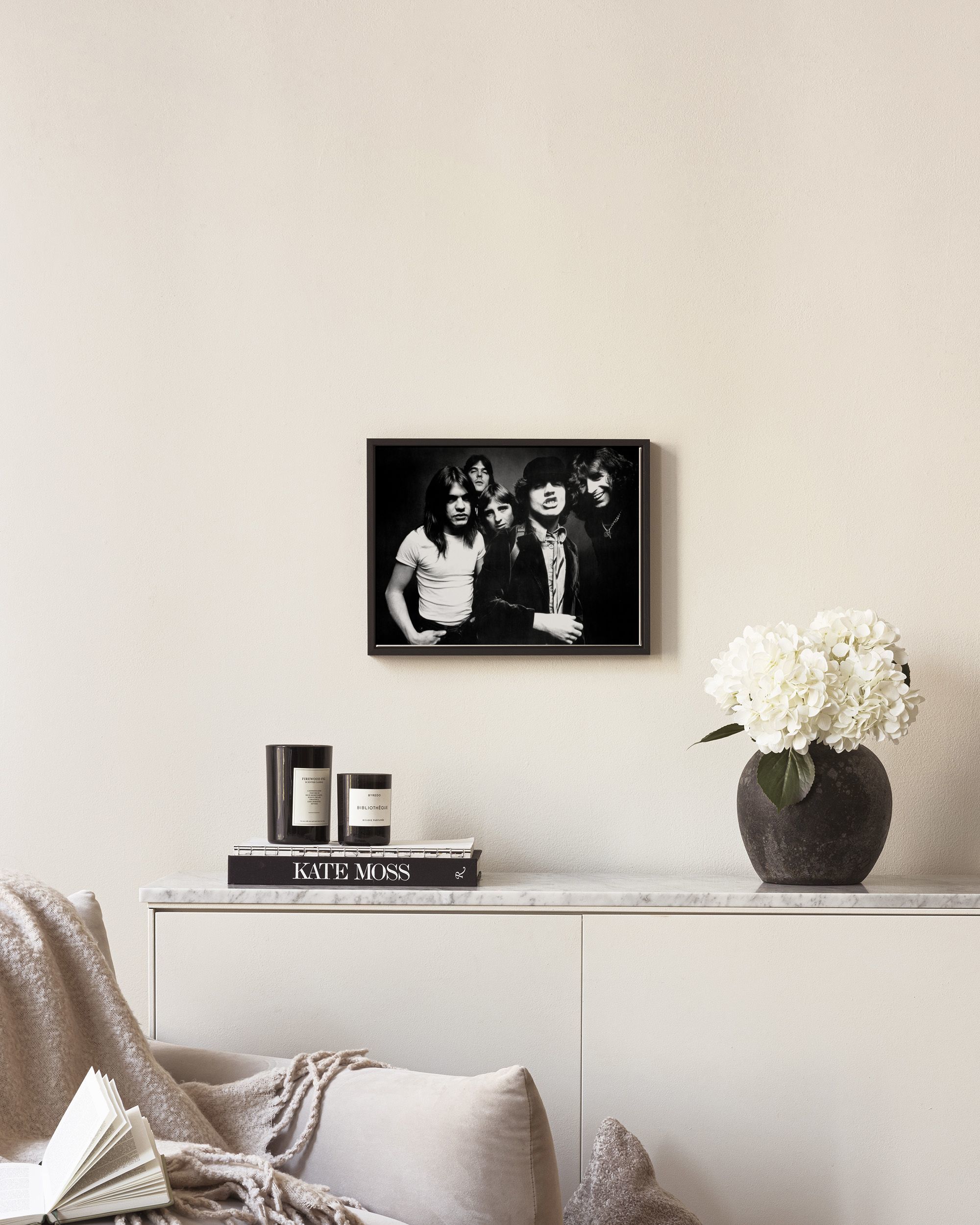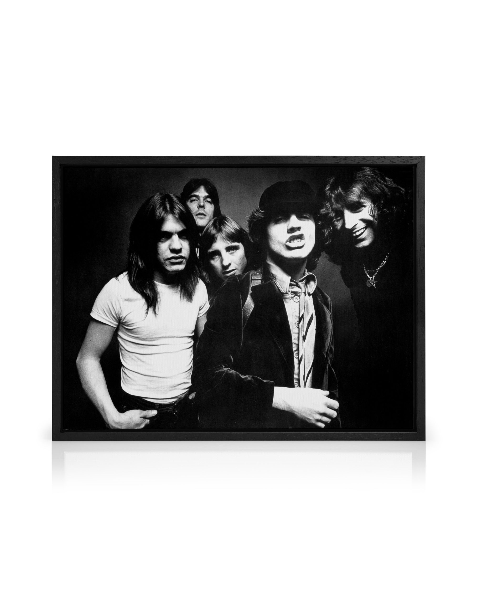 From $18.60A black and white canvas print AC/DC with long hair and playful expressions. The dark background and dramatic lighting highlight their faces, creating a bold look for your wall art.
