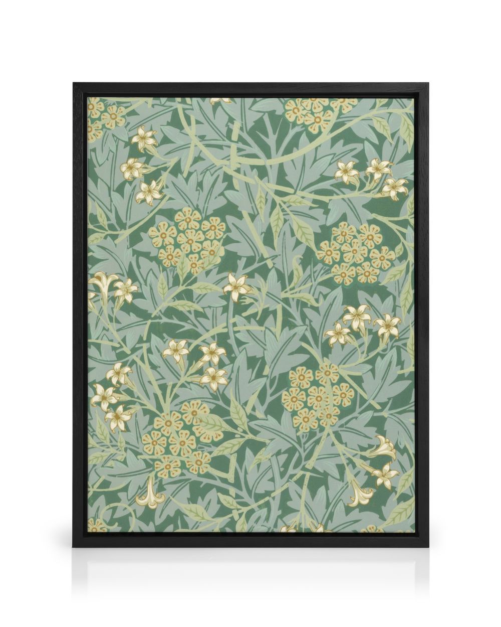 Floral canvas print with green leaves and cream jasmine flowers. A natural and calming canvas for your wall art.