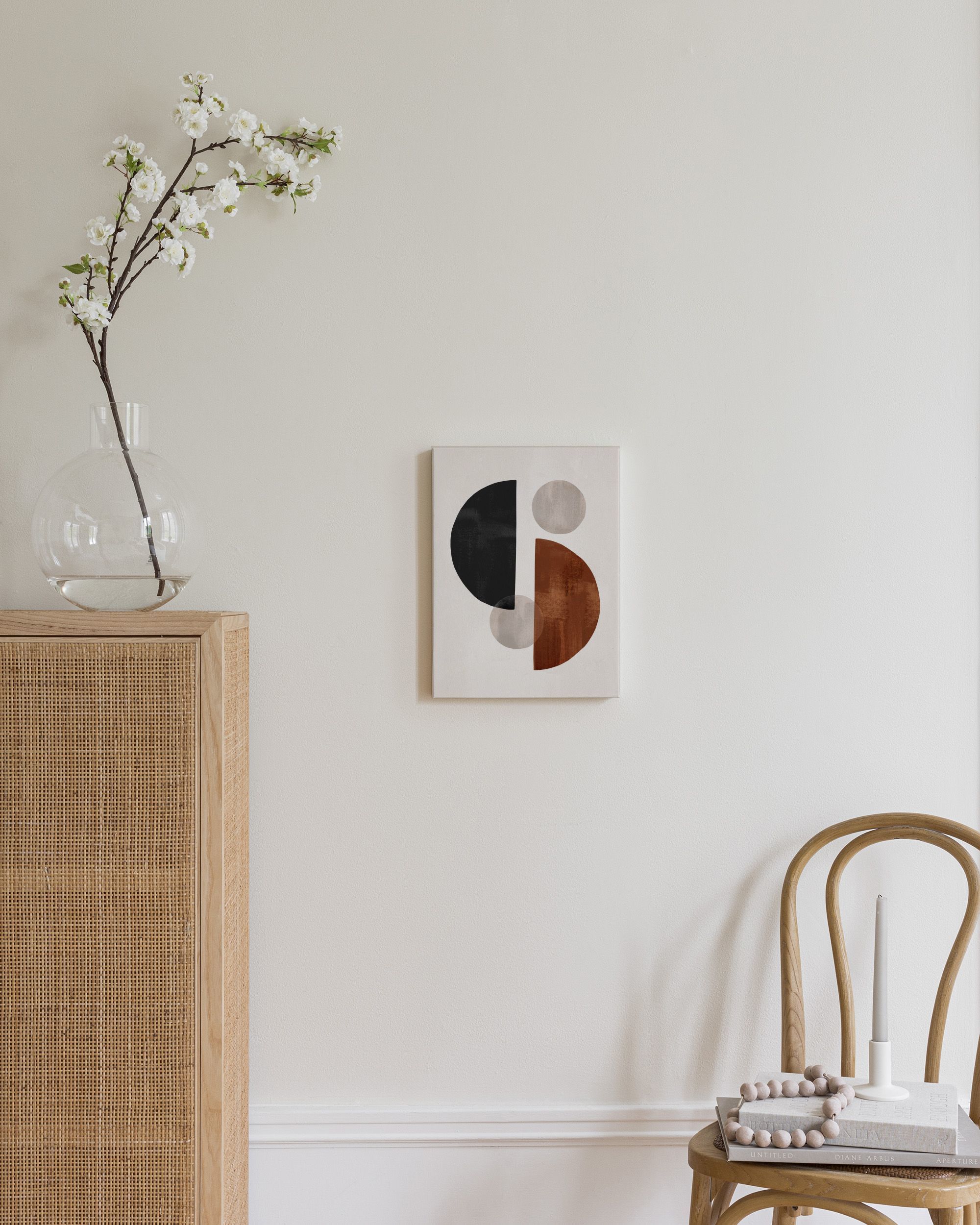 From $15.57An abstract canvas print with overlapping shapes in neutral tones on an off-white background. The textured paint strokes create a modern, expressive look.