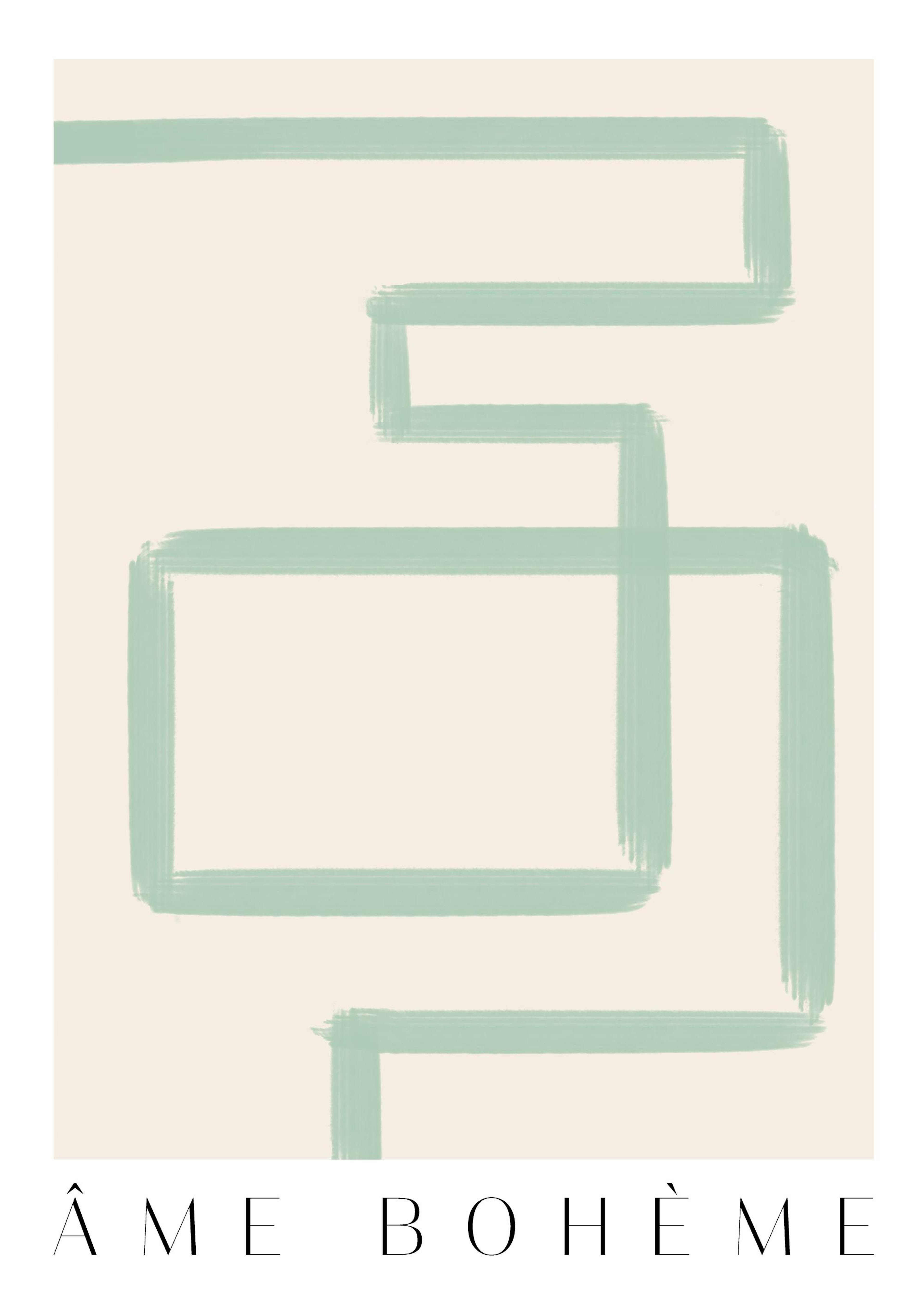 Abstract art print with green lines and beige background with the text 'Ame Boheme' in black. This wall art will make your home feel modern and trendy. Perfect pair with Ame Boheme No2 print