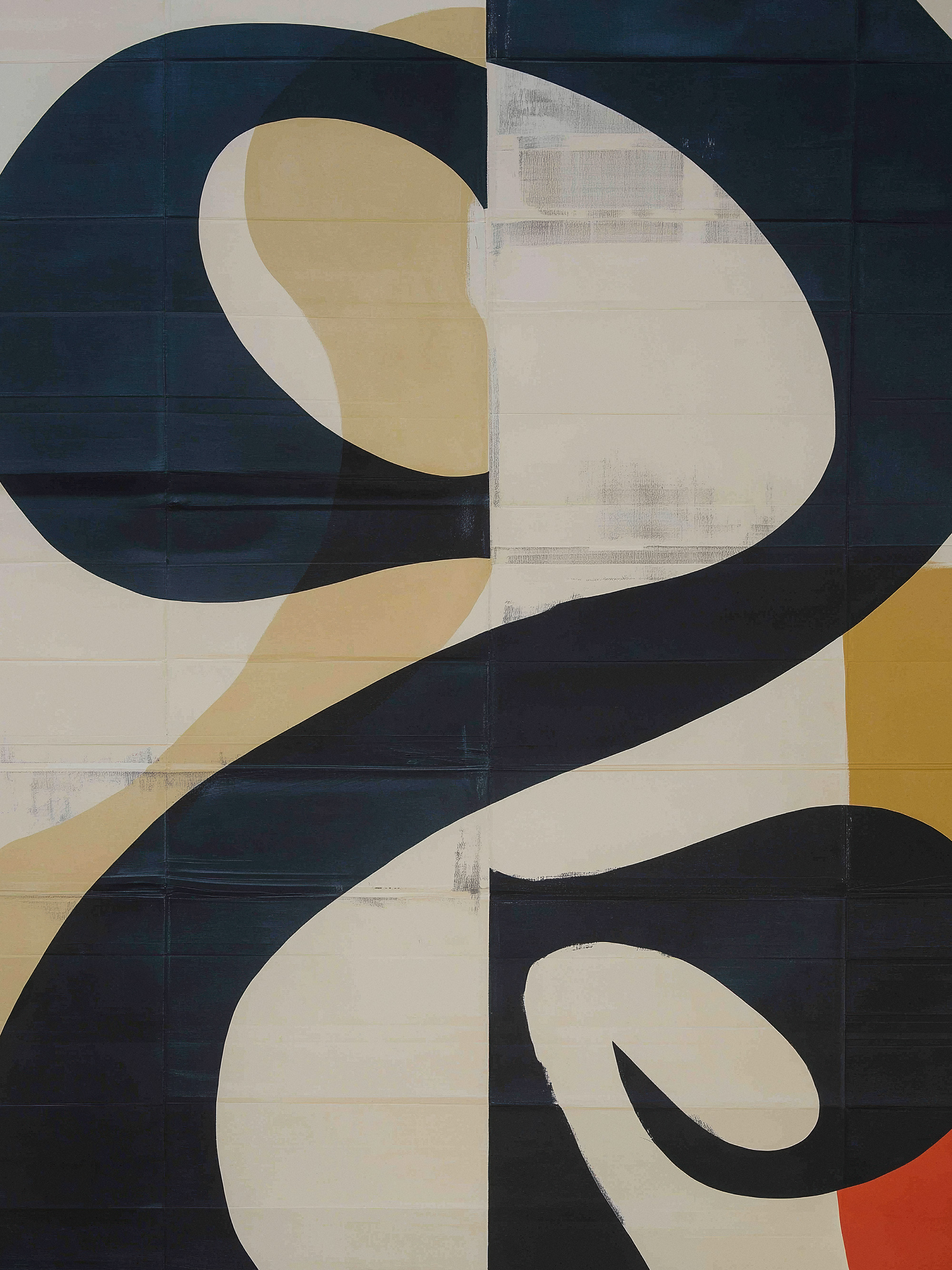 From $15.57A print with large dark blue and beige abstract shapes on a light beige background. The smooth, curving shapes create a sense of movement. Perfect wall art for your home.