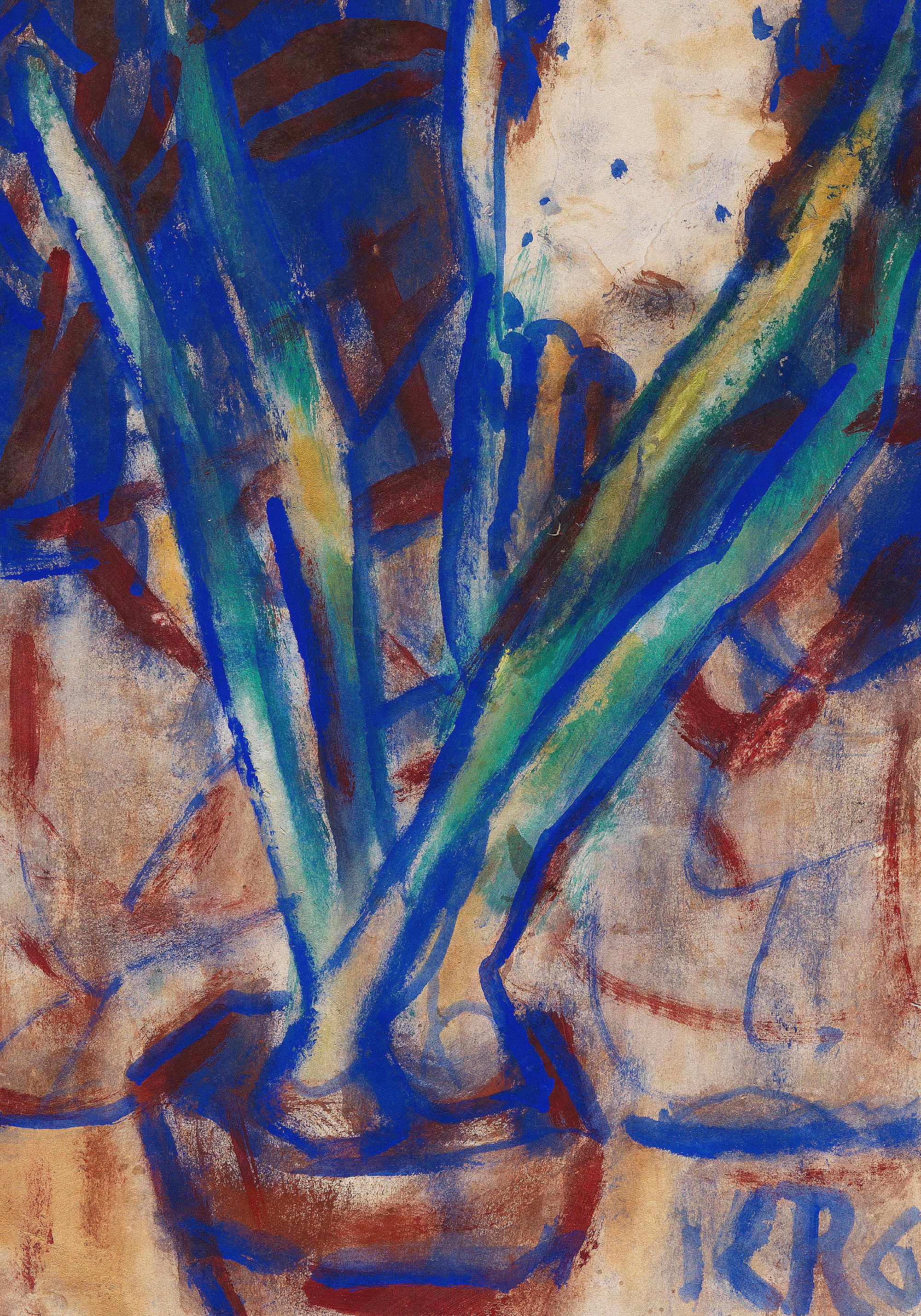 An abstract print with bold brushstrokes in blue, green, brown and beige. Perfect wall art to brighten up your home.
