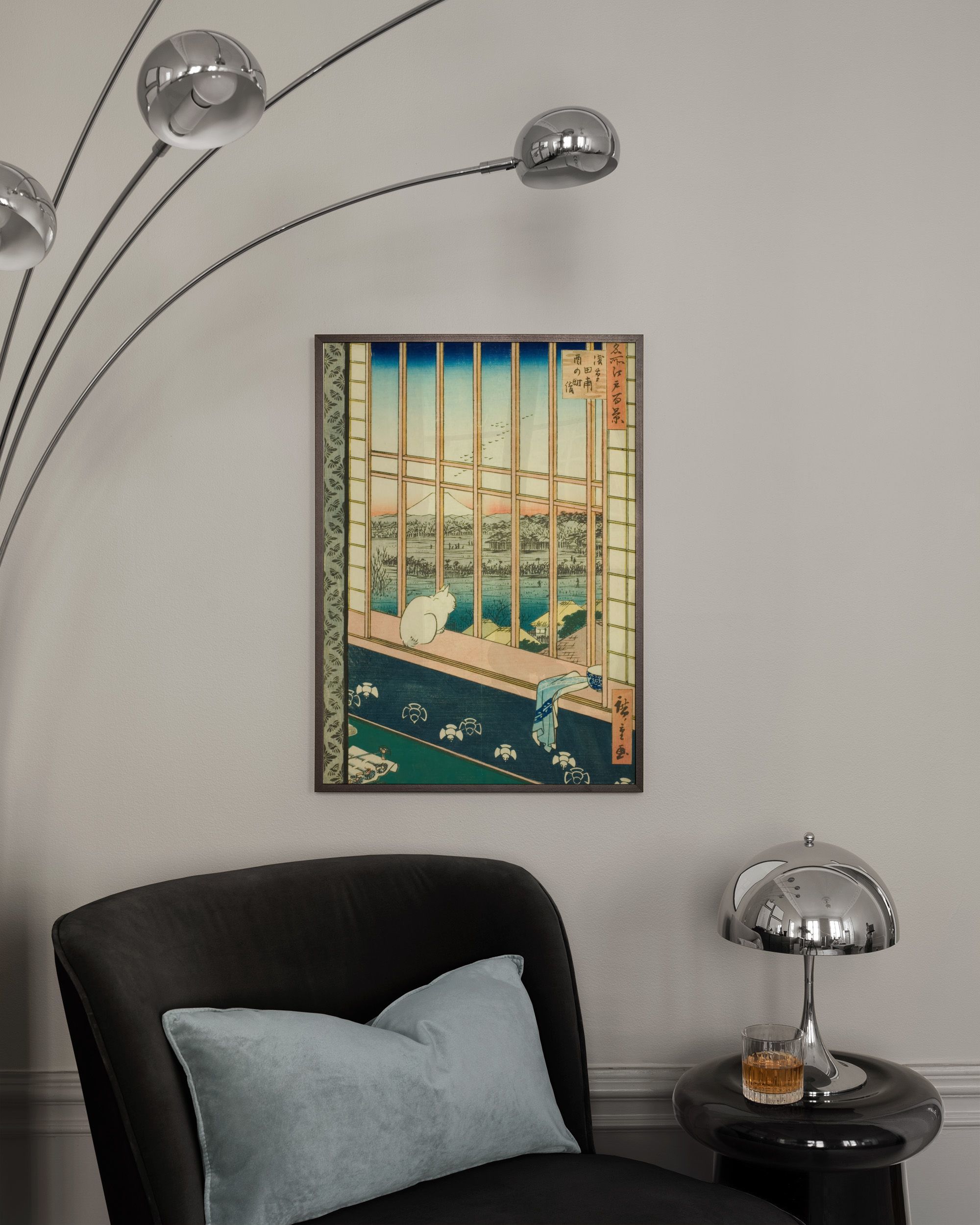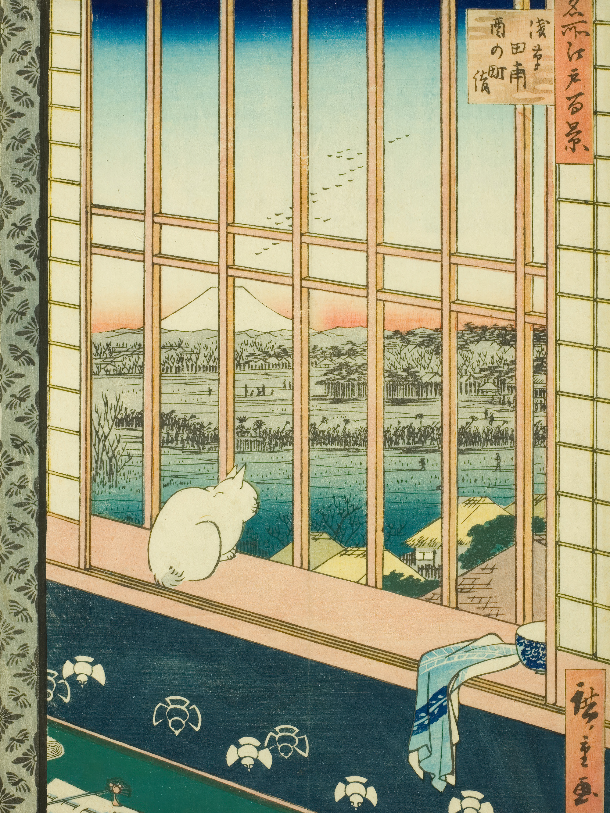 Utagawa Hiroshige - Cat Sitting in Window Seat Poster
