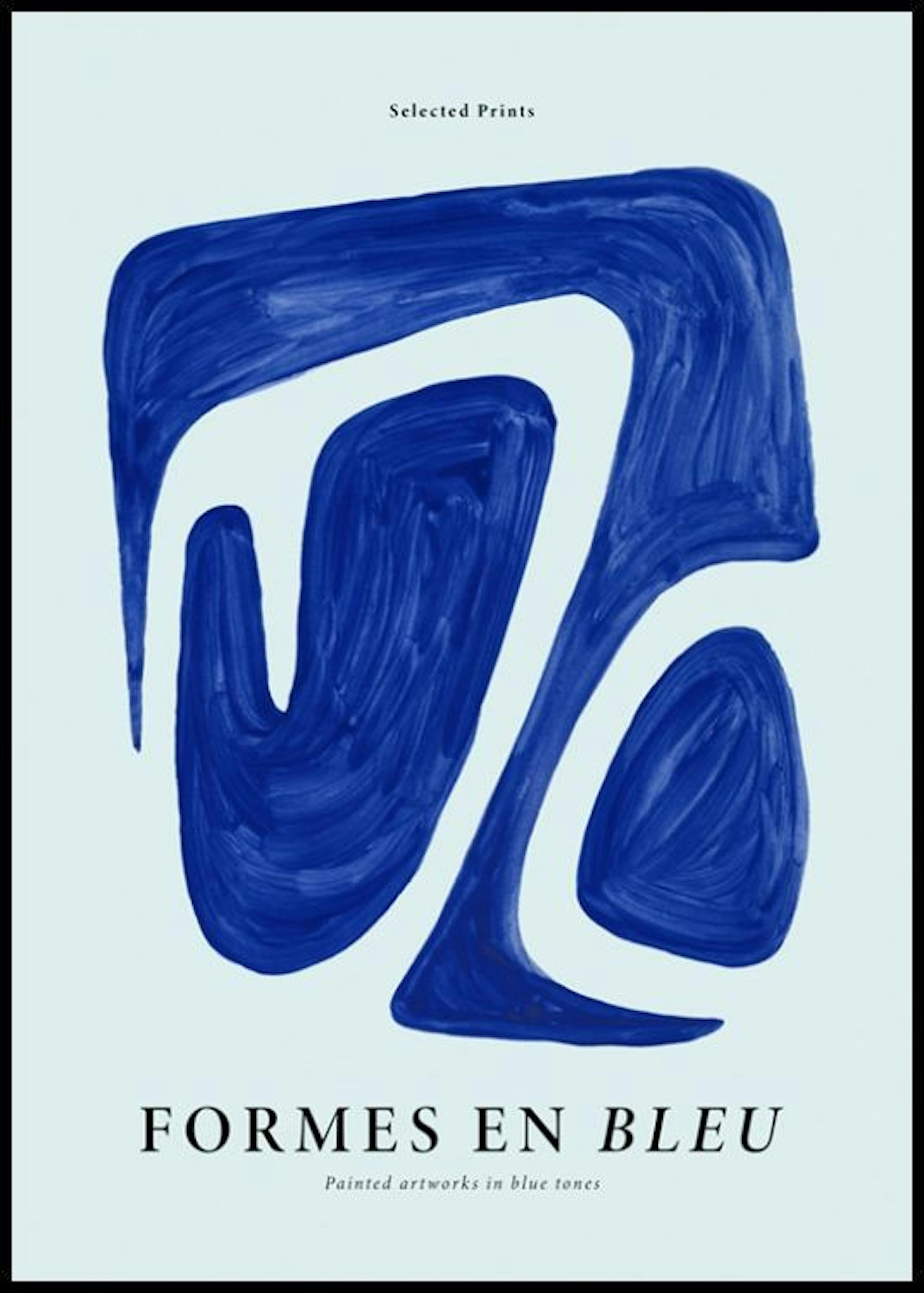 Abstract wall art with blue shapes and a light blue background. Add style to your space with this modern print!