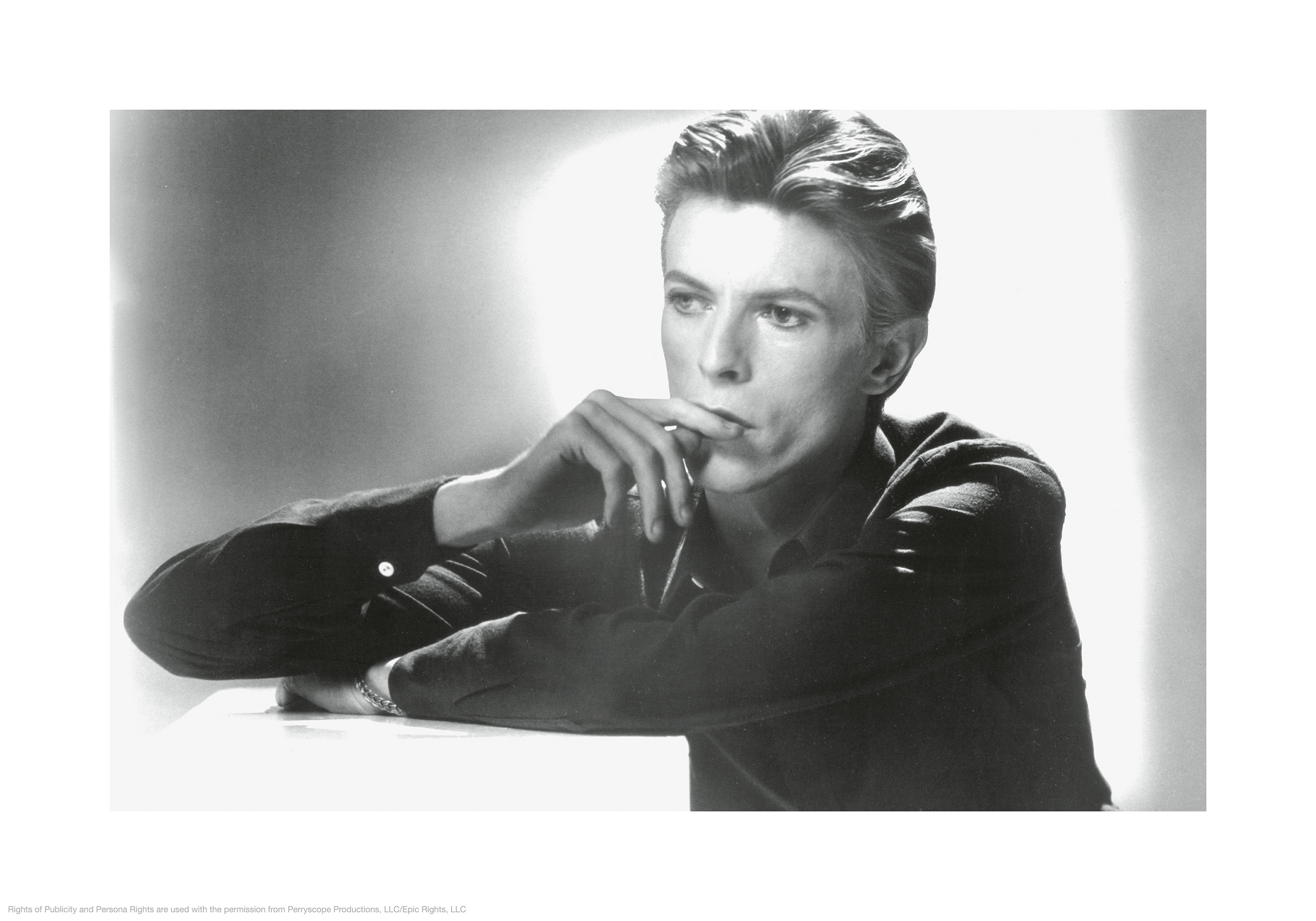 From $15.57A black and white print of David Bowie in a thoughtful pose, resting his chin on his hand. Perfect wall art for music lovers!
