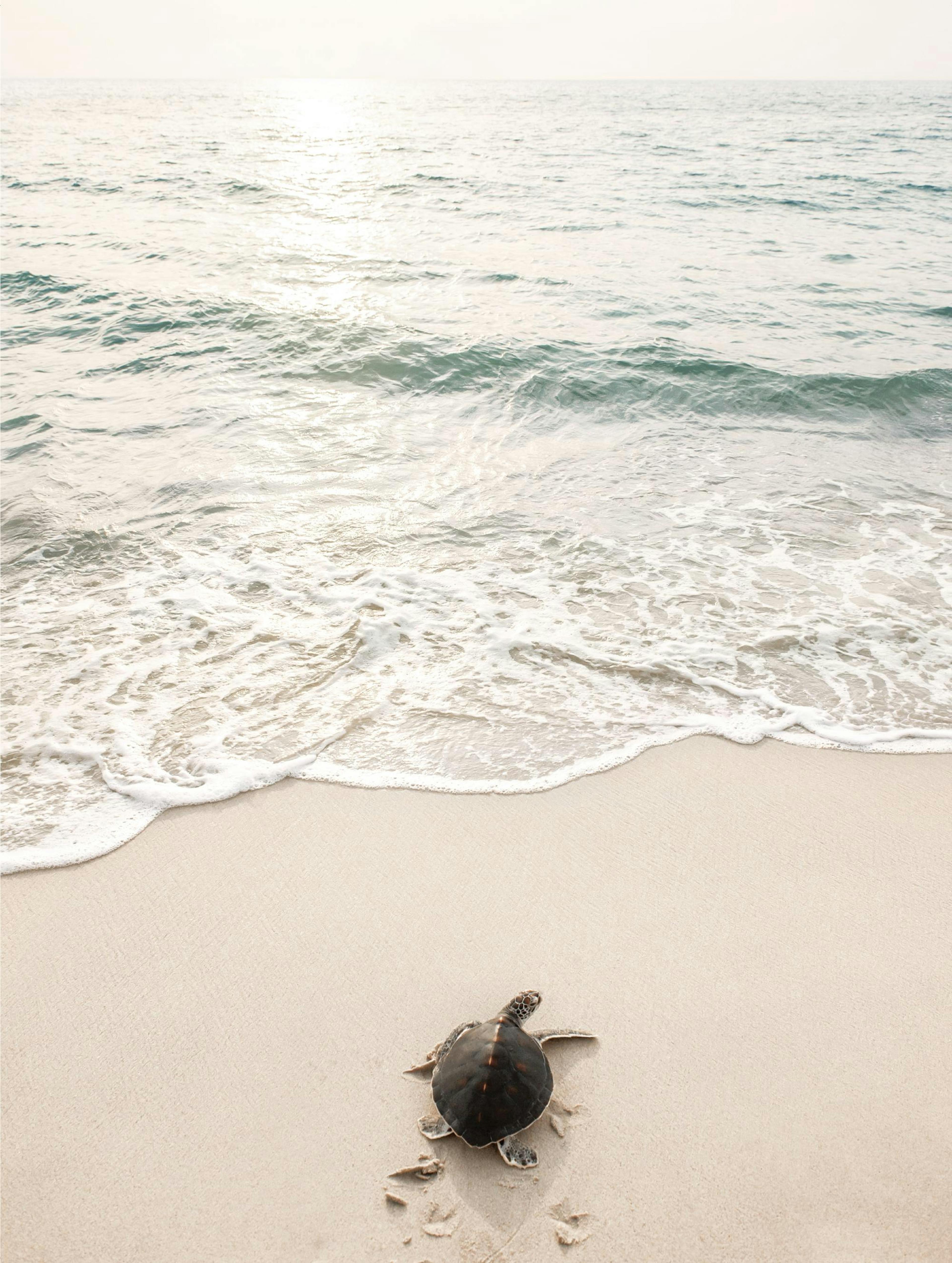 Photograph of a turtle at the beach on its way to the ocean. This art print creates a close to ocean vibe on your walls. Combine this print with other beachy prints and quotes of your favourite.