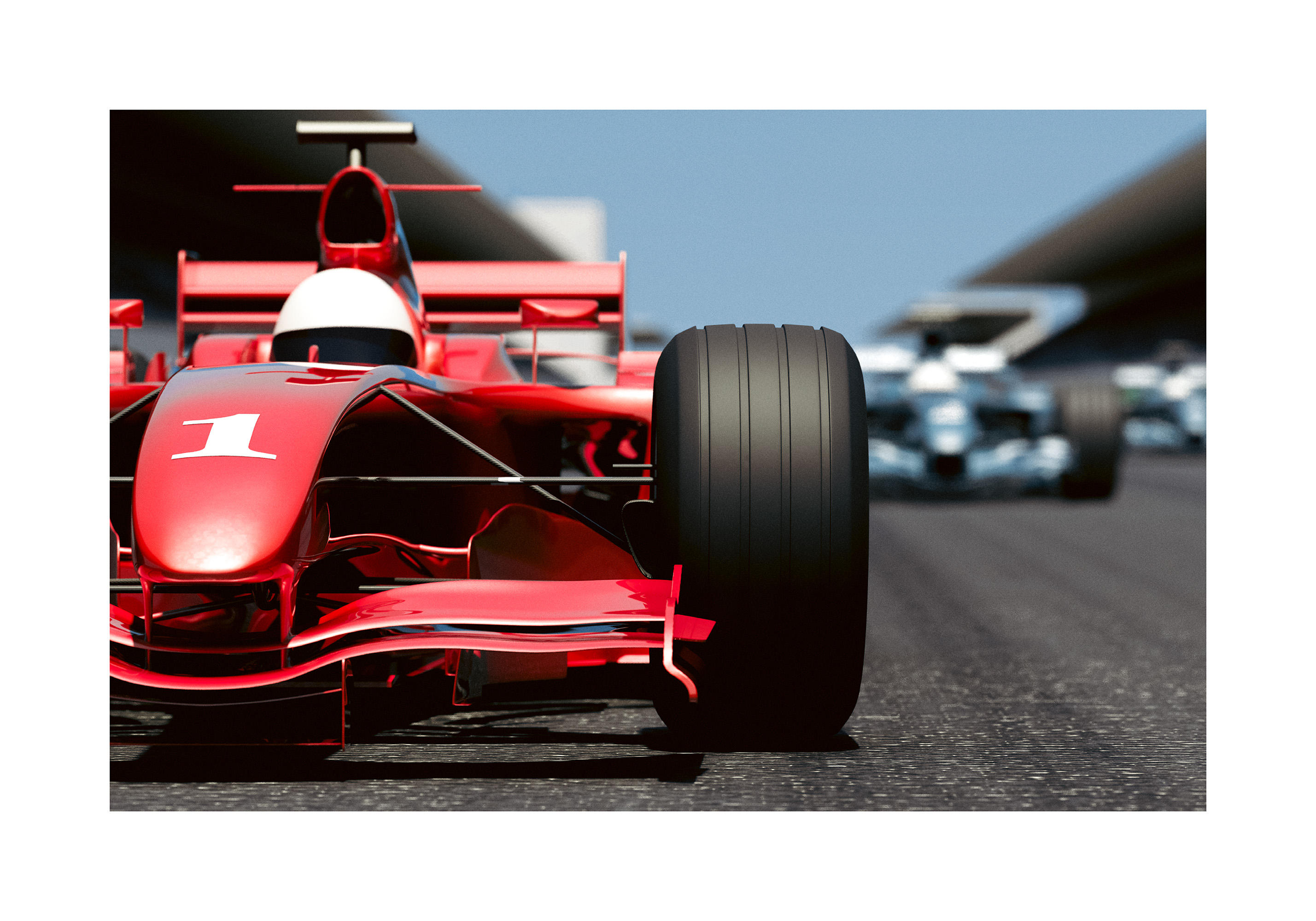 A print of a red race car with the number "1" on a track. Perfect wall art for any racing fan!