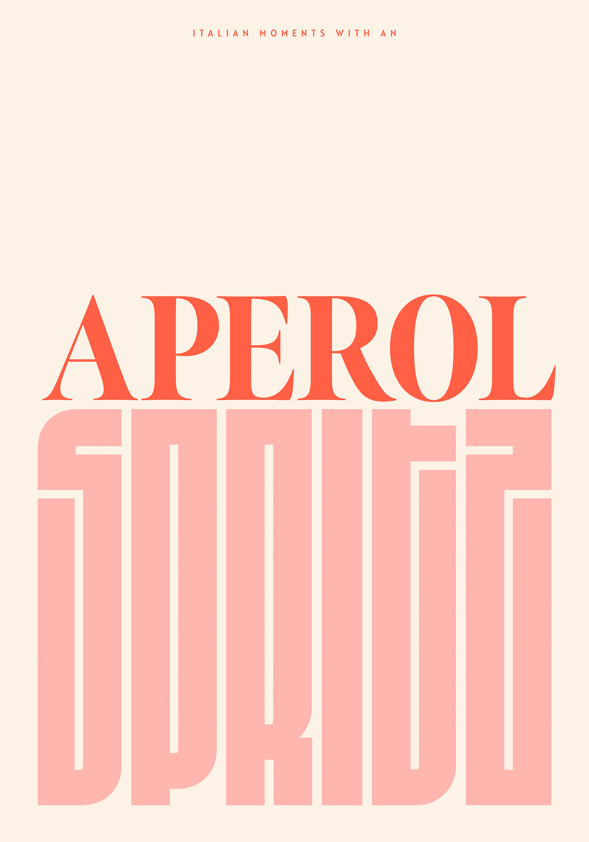 From $15.57A print with the text "Aperol Spritz" in bold red, orange, and pink letters on a beige background. Perfect wall art for anyone who loves Italian drinks and summer vibes.