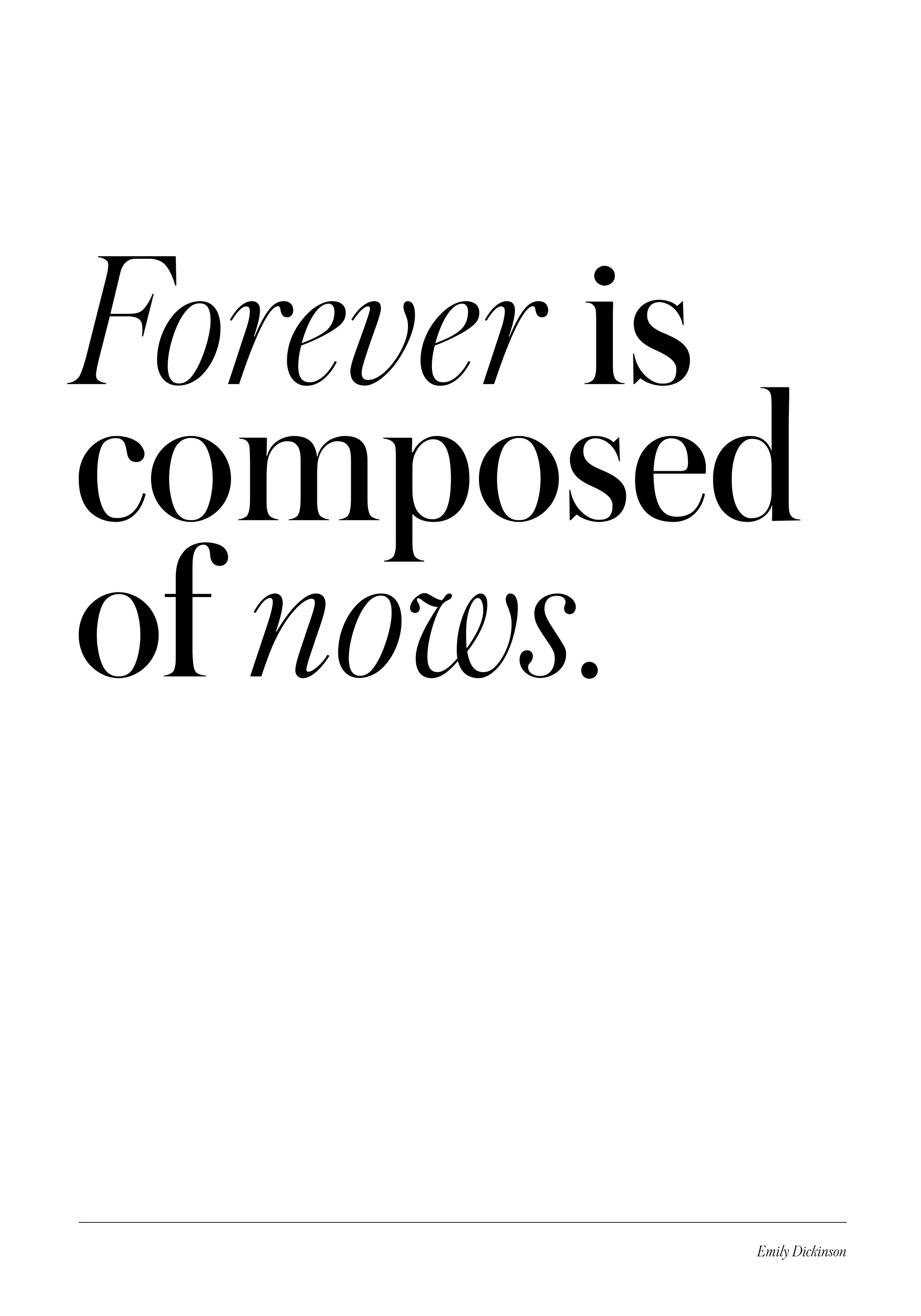 From $15.57A print with a quote by Emily Dickinson in black text on a white background. The text reads "Forever is composed of nows" in a simple serif font. Perfect wall art for your home.