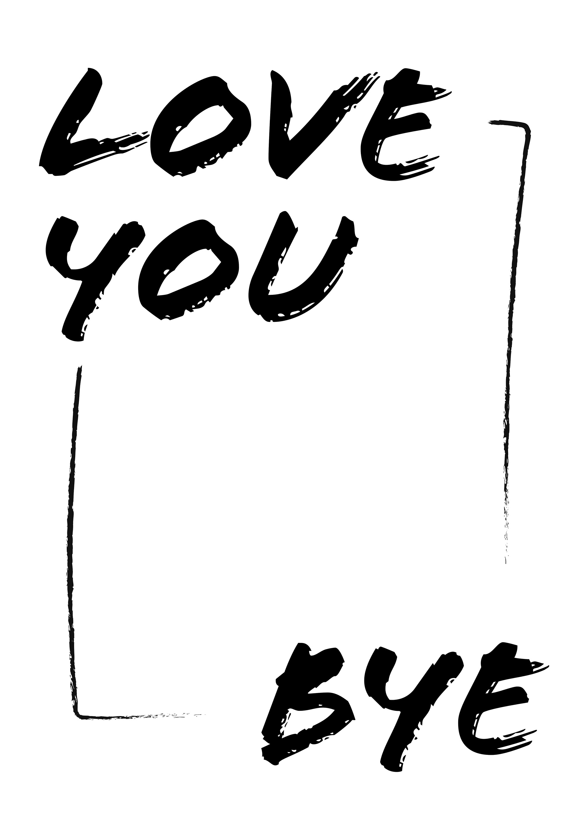 A print with black brushstroke text saying "Love You" and "Bye" on a white background. Perfect wall art for your home.