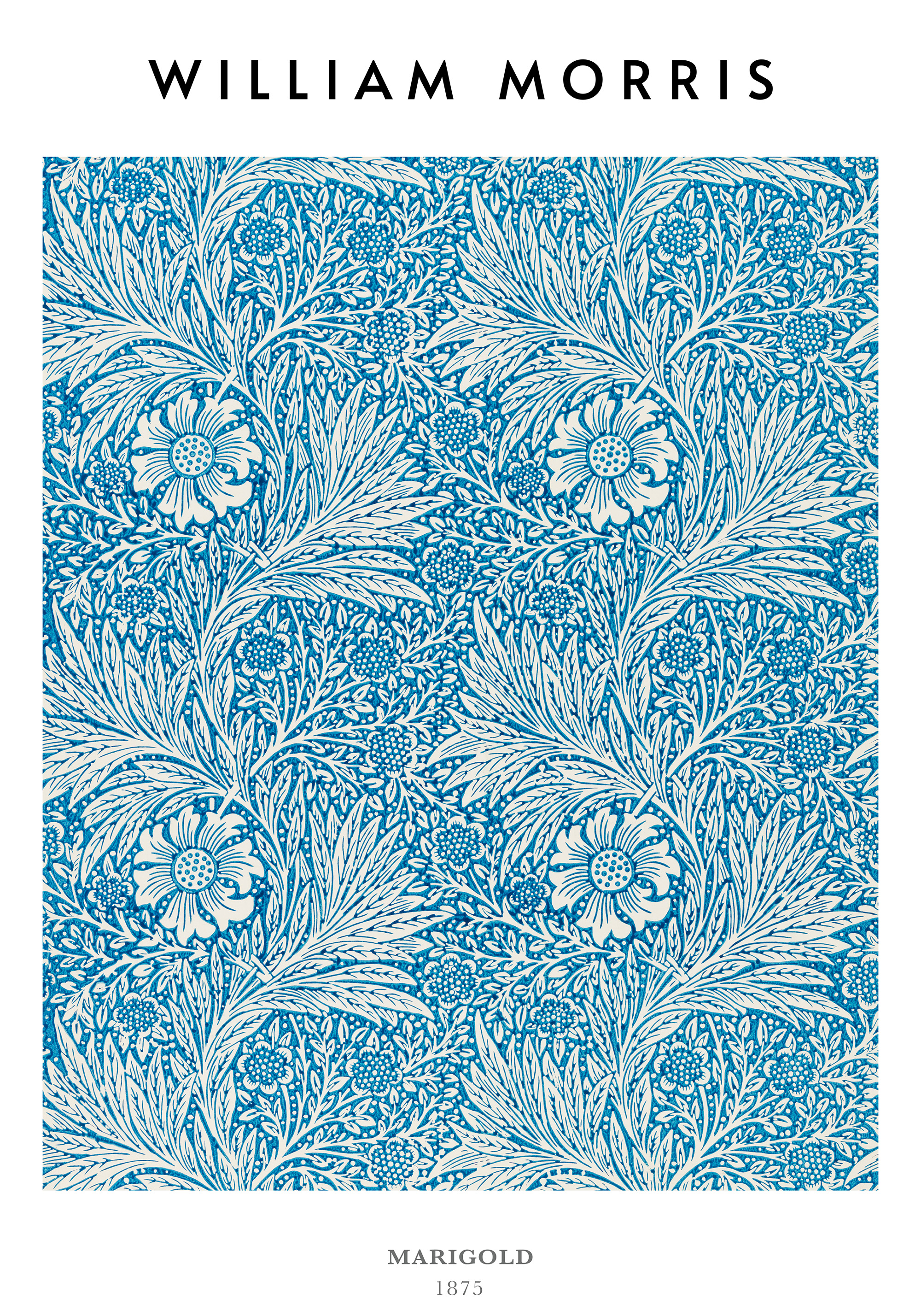 From $15.57A beautiful floral print with blue and white flowers and intricate leaves. The design features large detailed flowers and smaller vines in a symmetrical pattern. Perfect wall art for your home.