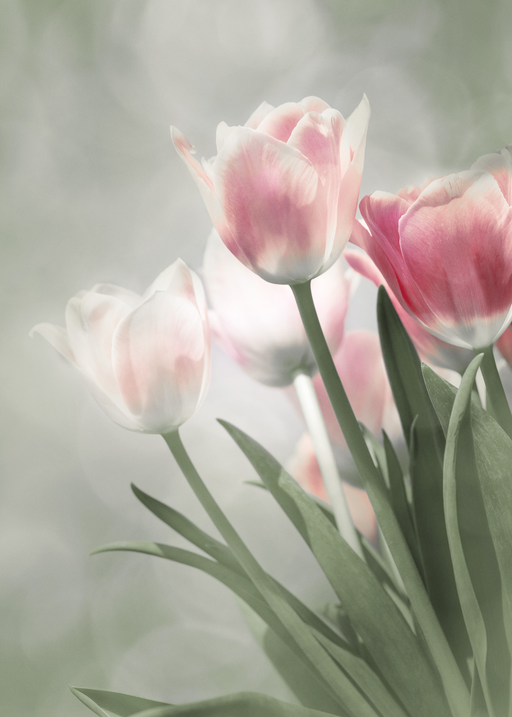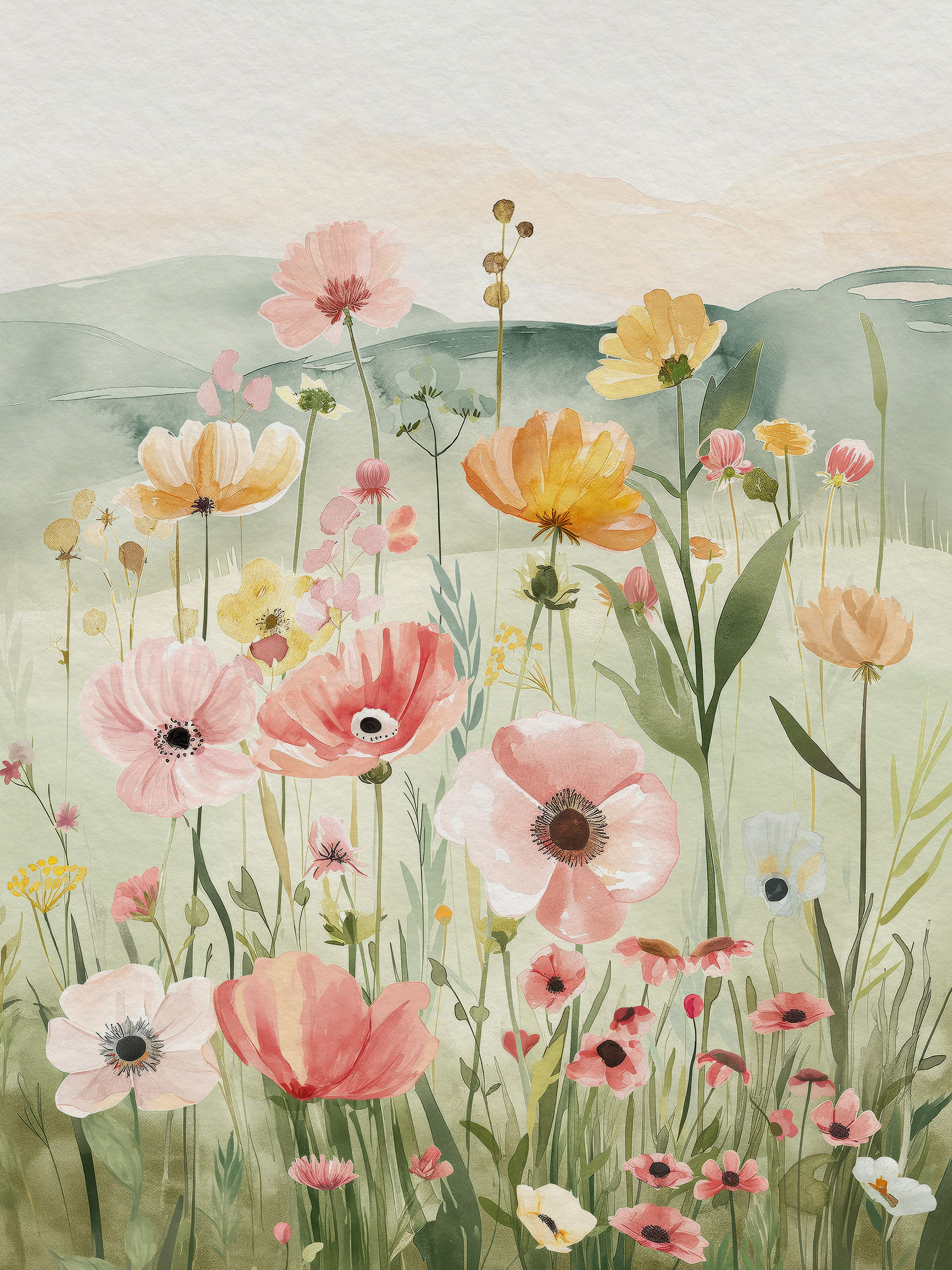 Tablouri cu flori și natură aduc o atmosferă caldă și relaxantă în orice cameră. Culorile verzi și bej creează un spațiu liniștit și plăcut.
