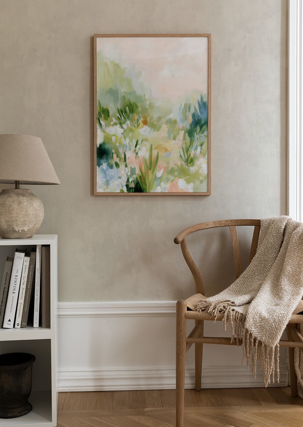 De la 45,12 RONUn poster cu flori abstracte în culori pastelate. Nuanțe de verde, roz, albastru și alb se îmbină frumos. Perfect pentru o atmosferă liniștită în cameră.