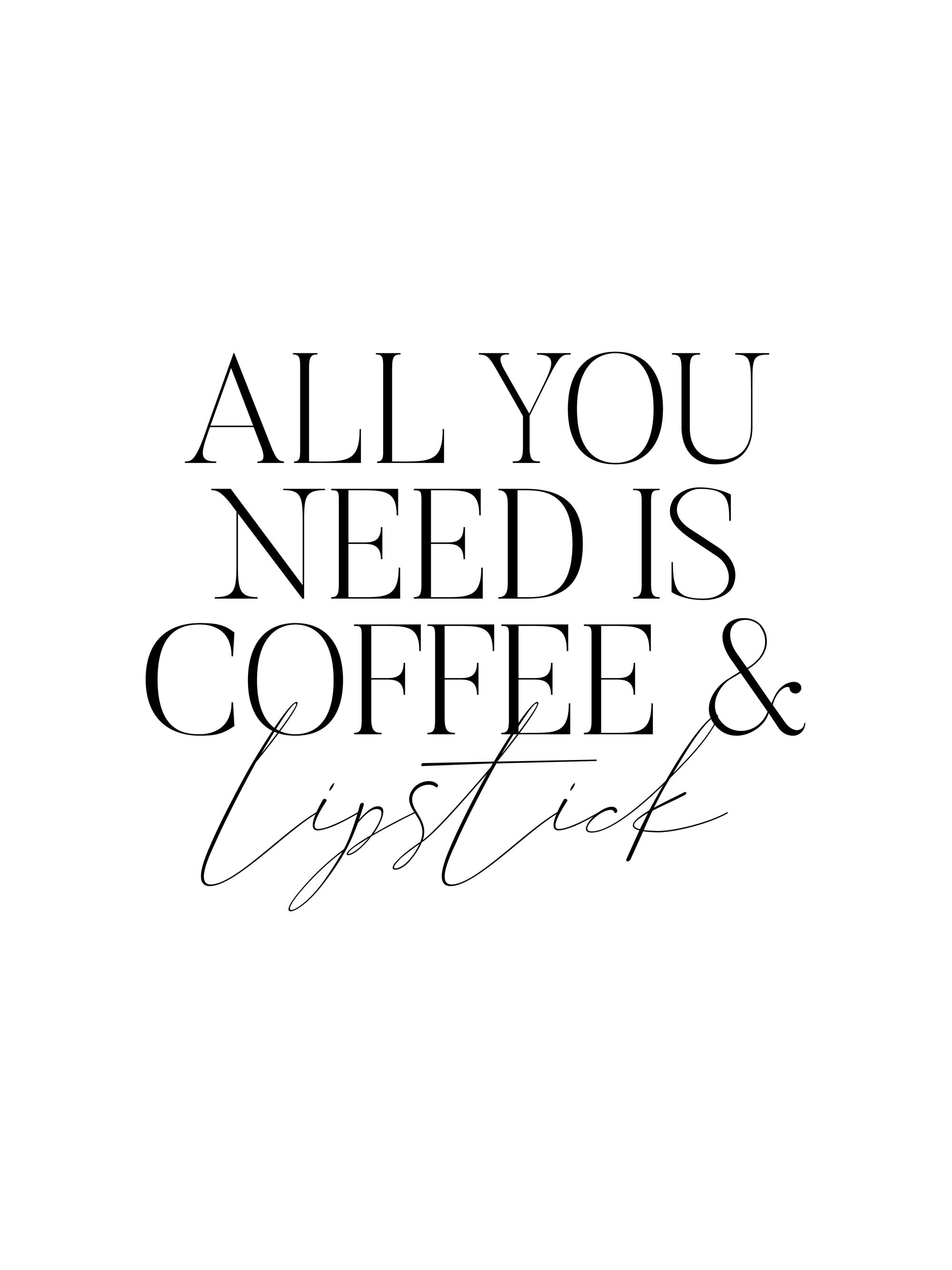 Tipar cu citat conținând textul "All you need is coffee & lipstick"" cu text negru și fundal alb. Tiparul artistic perfect pentru toate „victimele modei“ și persoanele pasionate de cafea! Combina acest tipar artistic cu fotografii pentru bucătărie sau postere pe tema modei.< / p>